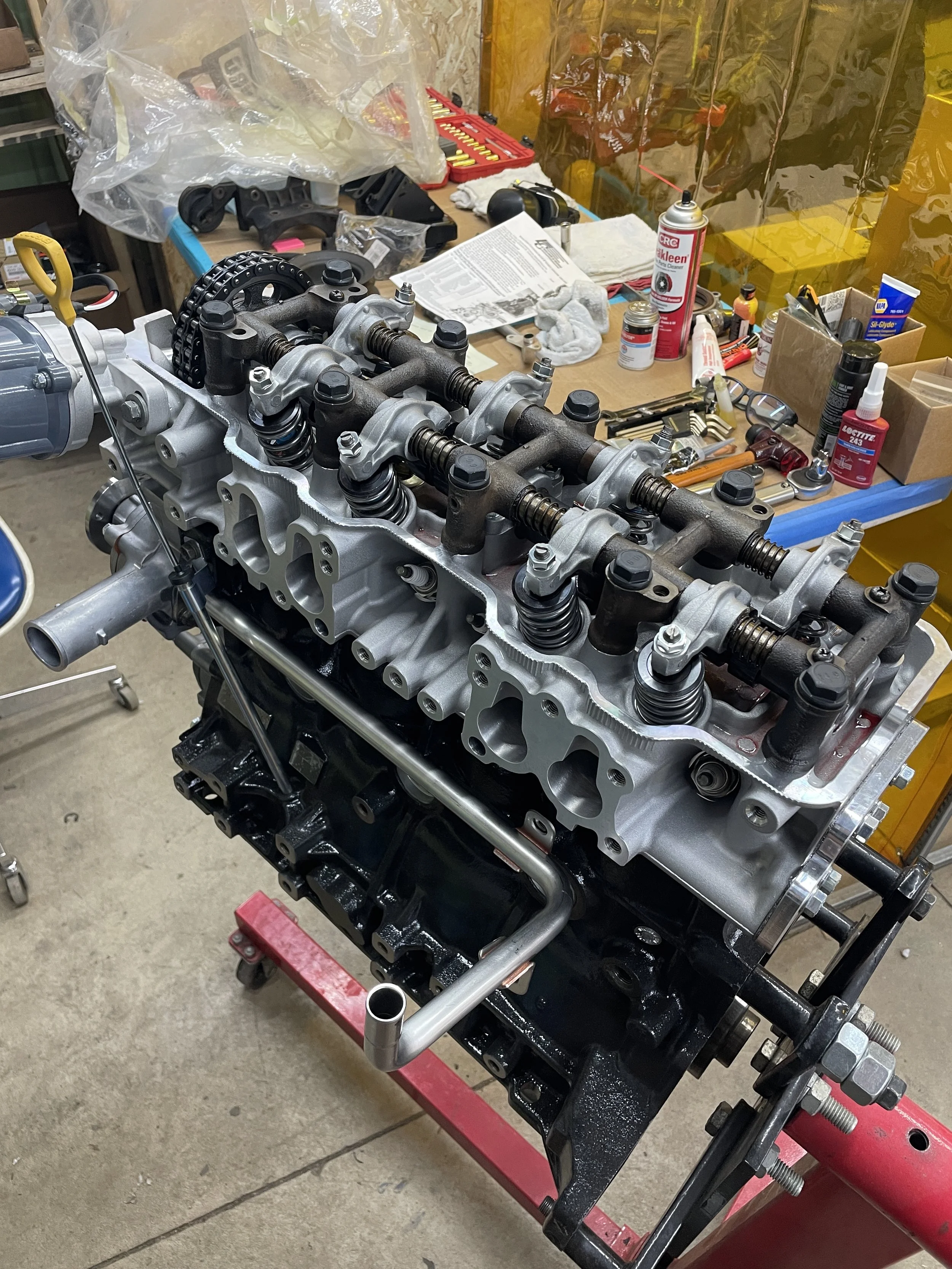 The engine was stripped down to the block and sent to a machine shop for inspection and machining. Once machining was finished, reassembly began. Sourcing parts was a challenge, but I created a spread sheet to make the process easier.