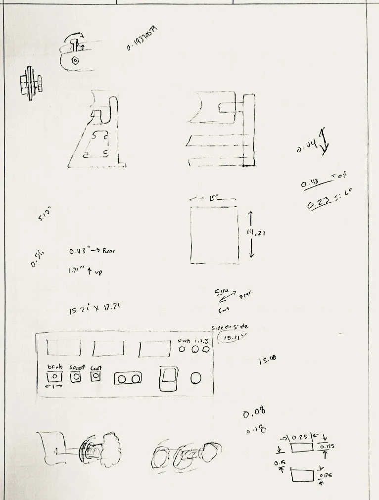 The enclosure was designed in SolidWorks and can be broken down into four subassemblies: the frame, electrical box, control panel, and cluster bracket. It features a carry handle, cord management brackets and the ability to rotate the gauge cluster up and down for viewing.