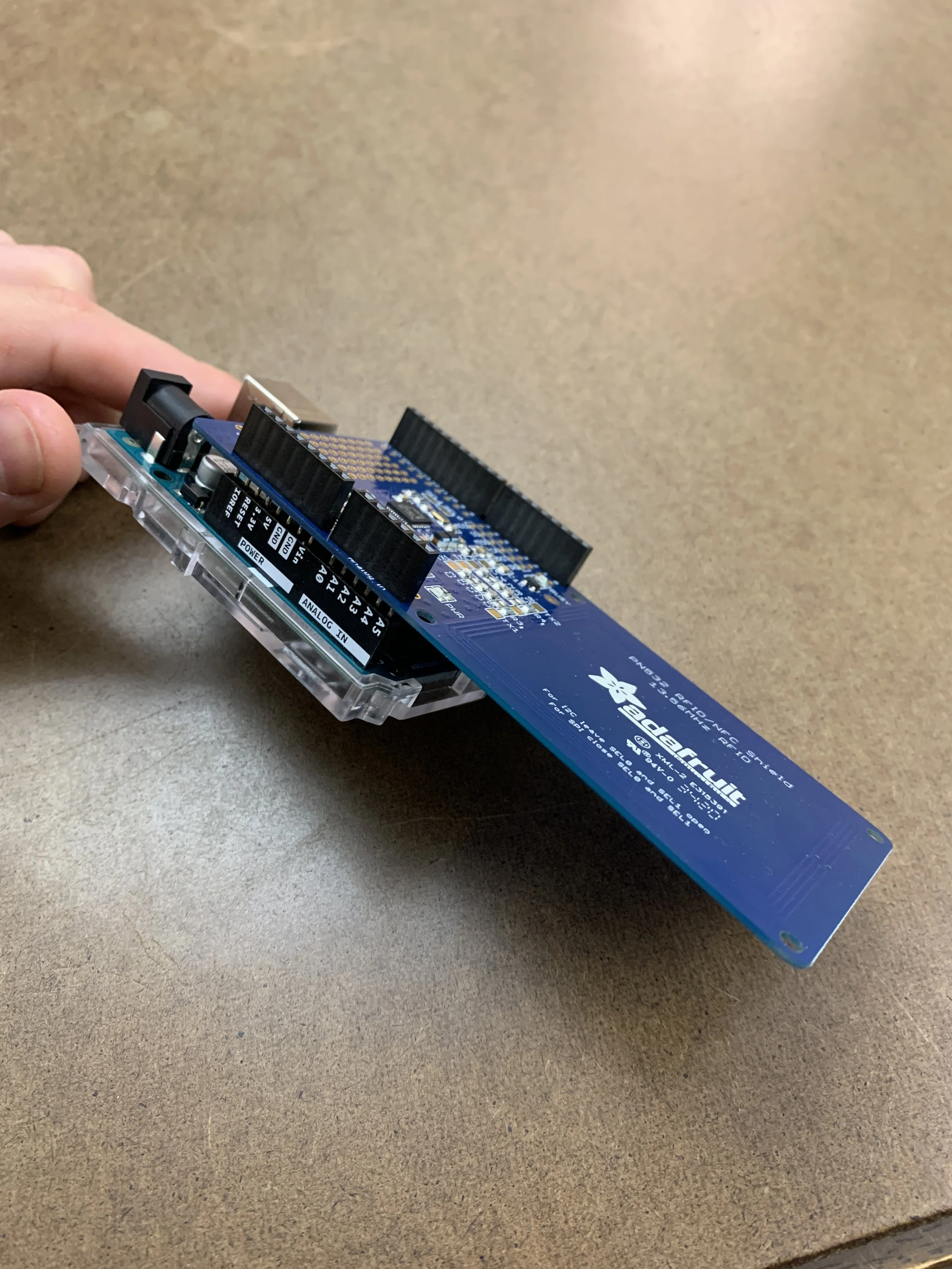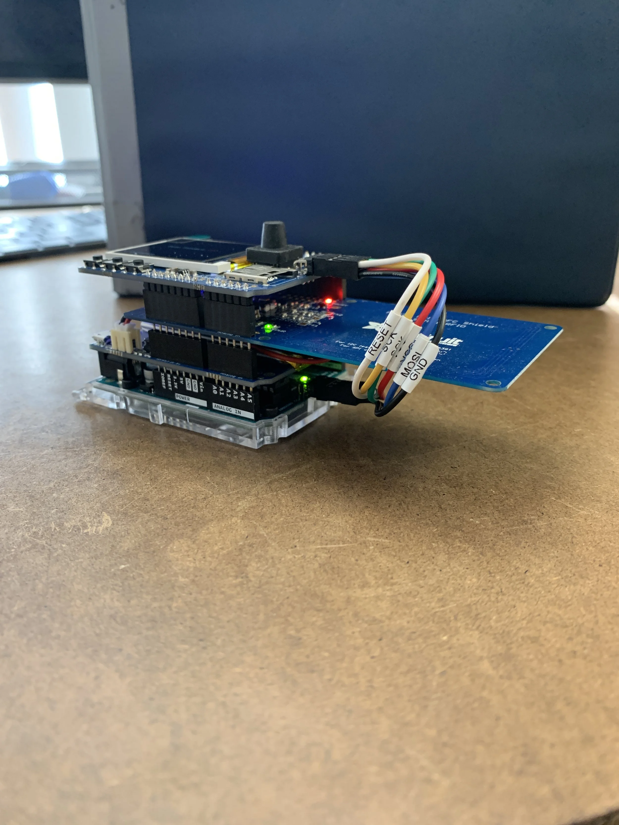The RFID shield along with the LCD shield required communication pins from the Arduino. I2C and SPI communication protocols were used to accomplish this task. A wiring harness was used to connect the LCD shield to the Arduino.